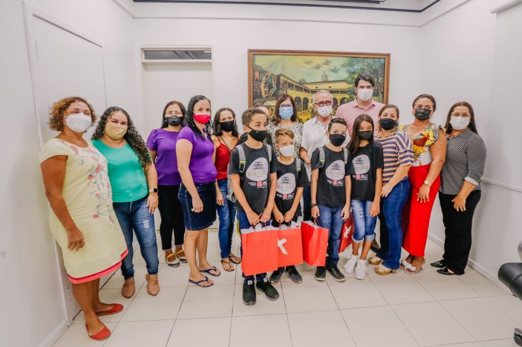 Prefeito se despede das crianças selecionadas para a Escola do Teatro Bolshoi, em Santa Catarina, e entrega kits com tablets